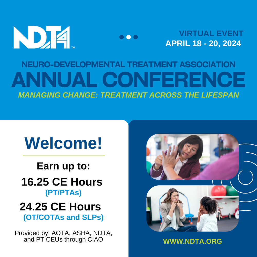 The NDTA Annual Conference Program's purpose is to bring state-of-the-art, relevant education to the therapy community based on theory, research and clinical application as it related to NDT.